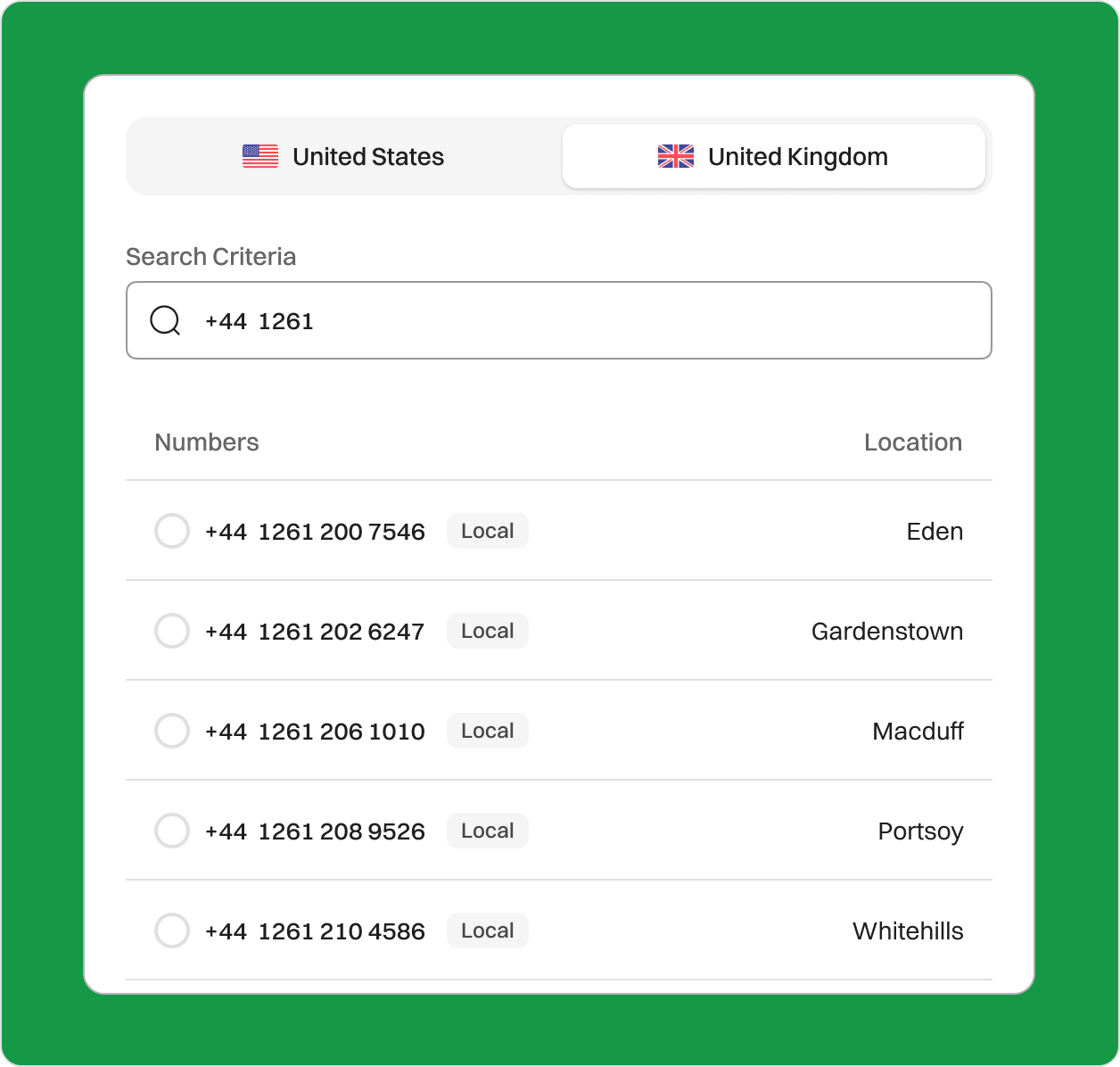 Get a 01261 area code virtual number for your business in Banff, Aberdeenshire. Build local trust, strengthen regional identity, and stay connected with a reliable virtual phone number.
