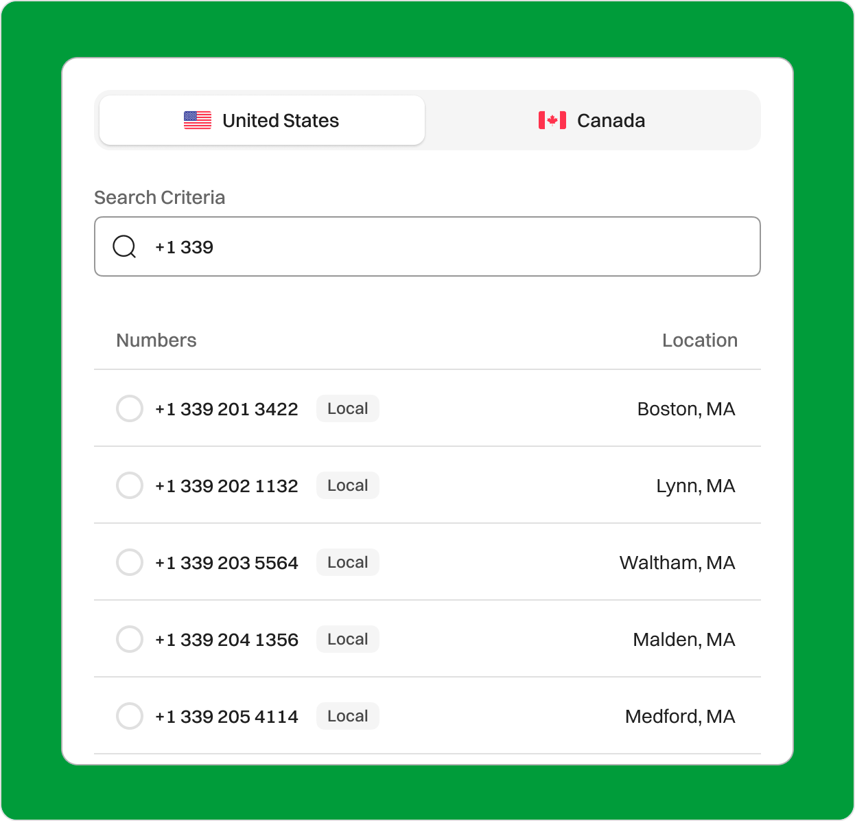Grow Your Business in Massachusetts with a 339 Area Code If you’re looking to expand your business presence in Massachusetts, acquiring a 339 area code phone number could be a powerful step toward building a strong local connection. Sign upRequest a Demo Endorsed by top industry leaders Trusted by industry experts for excellence and innovation. What is area code 339? The 339 area code is located in Massachusetts, USA, especially serving the Boston metropolitan area. It covers Boston’s inner suburbs and South Shore, including areas such as Quincy, Weymouth, Braintree, and other nearby communities. This area touches five other counties, such as Norfolk, Middlesex, Suffolk, Plymouth, and Essex. The area code 339 was established on May 2, 2001, as an overlay to the 781 area code. This means that it covers the same geographic region as the 781 area code, so existing numbers were not affected, instead, new numbers could be assigned the new 339 area code. Some of the nearby area codes of this region are 781 (Boston, MA), 351/978 (Lowell, MA), 401 (Providence, RI), 508/774 (Worcester, MA), and 617/857 (Boston, MA). Country USA State Massachusetts Major City Boston Time Zone Eastern Time Zone(EST) Telephone Number Format +1 (339)-XXX-XXXX Example of 339 phone number +1 (339)-732-4567 Zip Code 06461-06927 How to get a 339 Area Code Phone Number? You can purchase a 203 area code phone number from a VoIP service provider like Dialaxy. You can follow these steps. Sign up on the official Dialaxy website or mobile app. Log in to your account and navigate to the dashboard. Select “My Number” from the “Portal” menu. Click on “Buy Number.” Choose the US as your country and select the 339 area code from the list. Complete the payment and submit any required documents. How does a 339 Area Code Business Phone Number work? A business phone number with the 339 area code works just like any other telephone number in the USA. It allows both incoming and outgoing calls, providing a local contact point for businesses in the Greater Boston area. When a customer calls your business, the number is directed to your phone system, allowing you to manage calls efficiently. For example, if someone wants to reach your business at the number 732-4567, they would dial +1 (339)-732-4567. The 339 area code ensures the call is routed correctly to your business’s phone system. Who’s doing business in the 339 Area code? The area code 339 serving the Boston metropolitan area is a center of diverse business and industry activities. This region is home to vibrant business centers and residential villages, exhibiting a thriving economic landscape. The area’s strong local presence and connectivity assist businesses of all sizes, from technological startups to established retailers and service providers. The 339 area code supports a diverse range of businesses, including healthcare, finance, education, and manufacturing, which contributes to its role as a major economic driver in Massachusetts. The existence of several local businesses, combined with the area’s strategic location near Boston’s key economic districts, creates prospects for expansion and regional collaboration. Some of the major businesses are: Education Boston University, Suffolk University Healthcare institutions Beth Israel Deaconess Medical Center, Brigham and Women’s Hospital, Massachusetts General Hospital Manufacturing General Electric (GE), Textron Other major businesses IBM, Dell Technologies, Boston Scientific, Fidelity Investments Why Does Your Business Need a 339 Area Code Number? Increased local trust When businesses and individuals utilize 339 local phone numbers, the Boston community fosters a sense of familiarity and credibility. Customers are more likely to respond positively to calls from numbers they identify as being local, which helps to boost engagement and communication outcomes. Enhanced regional marketing When businesses include a local phone number in their marketing efforts, they can personalize their campaigns to better resonate with the regional audience. This local presence helps promotions appear more relevant and accessible by connecting the business to the community’s identity. Cost efficiency Businesses using local phone numbers can significantly reduce long-distance call charges, which can quickly benefit, especially for companies with high communication volumes. Local numbers come with cheaper pricing options and reduce total expenses for both inbound and outbound calls. Improved customer service Businesses with local phone numbers can benefit from local marketing methods and advertising opportunities. They can use their local phone number in advertising, directories, and community events to increase brand recognition and attract local customers. Enhanced local presence in Boston, MA Businesses that use a local phone number effectively demonstrate their commitment to the local market. This local presence not only gives customers a sense of familiarity and trust but also demonstrates that the company is actively involved in the community. Flexibility and Scalability As a company grows, establishing new local phone lines for different regions or departments is straightforward and scalable. Modern telecommunications technologies enable organizations to control local phone numbers from anywhere, resulting in greater operational flexibility. Enjoy 100+ Dialaxy’s features with local phone number Call, SMS, & Contact in one easy to use app. Phone Numbers Global Calling SMS Voicemail Number Sharing Contacts All Features Phone Numbers Expand your reach with Virtual Phone Numbers International Numbers: Establish a local presence of your business with our international phone numbers . Toll Free Numbers: Elevate your sales strategy and drive business growth with Toll Free Numbers. Multiple Phone Numbers: Use multiple phone numbers in one single dashboard. Explore our apps Global Calling Connect globally with effortl