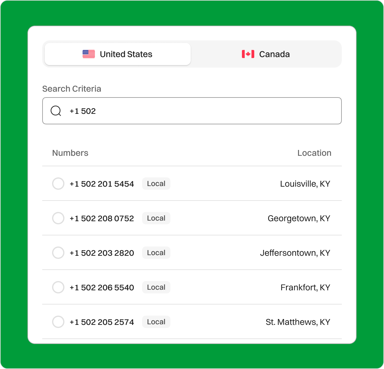 Expand Your Business with a 502 Area Code Virtual Number in Kentucky! Looking to establish a local presence in Kentucky? A 502 area code phone number connects your business to thriving communities such as Louisville, Frankfort, and Shelbyville. Sign upRequest a Demo Endorsed by top industry leaders Trusted by industry experts for excellence and innovation. What is area code 502? The 502 area code is located in north-central Kentucky, covering 15 counties, including Jefferson, Bullitt, Oldham, Franklin, Scott, Nelson, and others. Major cities within this area include Louisville, Georgetown, Jeffersontown, Frankfort, St. Matthews, Shively, Shelbyville, Bardstown, and Shepherdsville. Some nearby area codes of 502 are 270 (Bowling Green, KY), 606 (Ashland, KY), 859 (Lexington-Fayette, KY), and 364 (Bowling Green, KY). 502 was among the original 86 area codes established by AT&T and the Bell System back in 1947, initially catering to the entire state of Kentucky. In 1999, they divided the 502 area code, so some phone numbers had to change to the new area code 270. With a population of 1.04 million, area code 502 ranks among the most densely populated cities in Kentucky. This high population density translates to a large customer base, offering significant advantages to businesses operating within the area. Additionally, area code 502 follows the Eastern time zone, also referred to as Country USA State Kentucky Major City Lousiville Time Zone Eastern Time Zone(EST) Telephone Number Format +1 (502)-662-XXXX Example of 502 phone number +1 (502)-662-4567 Zip Code 40003-41098 How to get a 502 Area Code Phone Number? You can purchase a 502 area code phone number from a VoIP service provider like Dialaxy. You can follow these steps. Sign up on the official Dialaxy website or mobile app. Log in to your account and navigate to the dashboard. Select “My Number” from the “Portal” menu. Click on “Buy Number.” Choose the US as your country and select the 502 area code from the list. Complete the payment and submit any required documents. How does a 502 Area Code Business Phone Number work? The 502 business phone number works like any other phone number in the U.S. Area code 502 is a part of the North American Numbering Plan (NANP). To make a call, the caller must dial a 10-digit number, including the area code. For Example, to call 662-0515, you need to dial +1-502-662-0515, where the +1 is the USA country. The 502 is the area code that routes calls to the specific region, and 662 is a central code or exchange that forwards calls to the specific service provider. The final 0515 is the subscriber number that identifies the business or individual dialed. Who’s doing business in the 502 Area code? Businesses in the 502 area code thrive in industries like healthcare, manufacturing, tourism, and logistics. Major companies contribute significantly to the local economy and job market. Key industries and businesses in the 502 area code include: Healthcare Norton Healthcare (offering comprehensive medical services in Louisville). Manufacturing Ford Motor Company (automotive production facilities in Louisville). Tourism Kentucky Derby (held annually at Churchill Downs in Louisville). Logistics UPS Worldport (a major air cargo hub in Louisville). The 502 area code connects over 1.4 million residents in Kentucky. With an average household income of $61,129 and steady economic growth, it offers a promising market for businesses. Why Does Your Business Need a 502 Area Code Number? Create a local presence in Louisville and nearby areas Use the 502 area code number to make your business feel local. No matter where your location is, just use the local phone number for your business calls. Dialaxy makes it super easy for you. Talk to local customers, understand what they want, and give them valuable service. Give your business more professional and scam-free looks Boost your business's professionalism by opting for a phone number featuring the 502 area code. Local businesses often inspire greater trust and preference among customers. Having a local phone number makes your business appear authentic and fosters trust with your client. Separate work and personal number Safeguard your personal privacy with a dedicated 502 phone number for your business accessible from your device, wherever you are. Take control of your work-life balance by muting business notifications outside working hours, ensuring uninterrupted personal tranquility. Powerful standard PBX features Access all the advanced functionalities of 502 business phone numbers through the Dialaxy app. Explore advanced calling features such as number sharing, call monitoring, call recording, and more to enhance your business communication capabilities. No additional tools needed No need for additional tools for each phone number. Use your existing digital device for 502 area code numbers with the Dialaxy App. Just download it, and your device becomes a phone. Easy and flexible start with what you've got! Increase your approval rate and enhance your sales Using a 502 area code number will help you get more calls answered in the local area. Improve how well your team works and serves customers with 502 phone numbers, leading to better sales. Enjoy 100+ Dialaxy’s features with local phone number Call, SMS, & Contact in one easy to use app. Phone Numbers Global Calling SMS Voicemail Number Sharing Contacts All Features Phone Numbers Expand your reach with Virtual Phone Numbers International Numbers: Establish a local presence of your business with our international phone numbers . Toll Free Numbers: Elevate your sales strategy and drive business growth with Toll Free Numbers. Multiple Phone Numbers: Use multiple phone numbers in one single dashboard. Explore our apps Global Calling Connect globally with effortless calls Extended Reach: Enables businesses to expand their market by reaching international customers. Flexibility: Allows employees to make interna