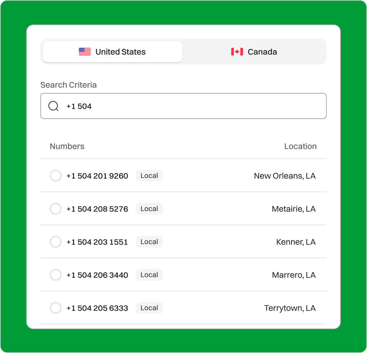 As part of the North American Numbering Plan (NANP), the 504 area code connects businesses with the local market in Louisiana. Using a 504 number enhances your brand’s credibility by establishing a trusted, local presence in a thriving community.