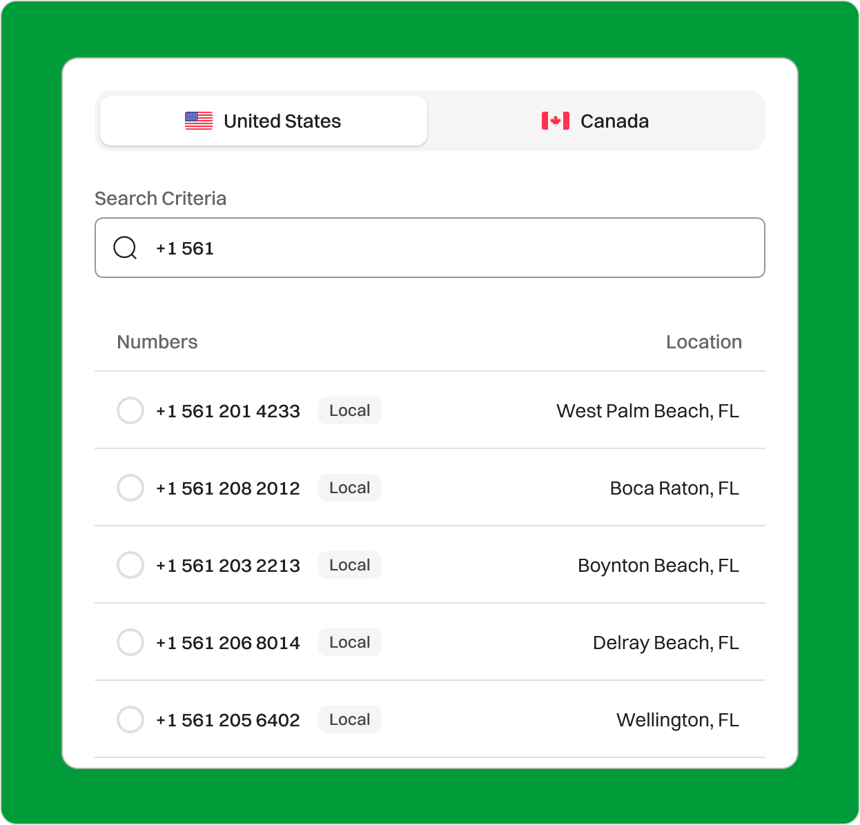 Expand Your Business in South Eastern Florida with a 561 Area Code Are you aiming to establish a lasting connection in South Florida? Securing a 561 area code phone number is your key to building trust and credibility within the dynamic communities of Palm Beach County. Sign upRequest a Demo Endorsed by top industry leaders Trusted by industry experts for excellence and innovation. What is area code 561? The 561 area code is located in southeastern Florida, which is in the Eastern time zone. It covers major cities like West Palm Beach, Boca Raton, Boynton Beach, Delray Beach, and Wellington, as well as the counties of Palm Beach and Broward. Area code 561 was created on May 13, 1996. It was split off from area code 407. In 2002, area code 561 was later split to form the 772 area code. Due to the popularity of the 561 area code, an overlay area code 728 was put into service on March 10, 2023. The 561/728 overlay requires ten-digit dialing (area code + seven-digit number) because different homes in the same geographic area may have the same seven-digit phone number but a different area code. Area code 561 covers the Palm Beach County region of Florida, which includes many smaller communities as well as the larger cities and towns of Boca Raton, Boynton Beach, Delray Beach, Greenacres, Jupiter, Lake Worth, Palm Beach Gardens, Riviera Beach, Royal Palm Beach, Wellington, and West Palm Beach among others. Country USA State Florida Major City West Plam Beach Time Zone Eastern Time Zone(EST) Telephone Number Format +1 (561)-XXX-XXXX Example of 561 phone number +1 (561)-207-4567 Zip Code 33430-32971 How to get a 561 Area Code Phone Number? You can purchase a 561 area code phone number from a VoIP service provider like Dialaxy. You can follow these steps. Sign up on the official Dialaxy website or mobile app. Log in to your account and navigate to the dashboard. Select “My Number” from the “Portal” menu. Click on “Buy Number.” Choose the US as your country and select the 561 area code from the list. Complete the payment and submit any required documents. How does a 561 Area Code Business Phone Number work? A 561 business phone number operates similarly to any other phone number in the United States. It enables businesses to establish a local presence in West Palm Beach, Florida, and the surrounding area. Businesses can receive calls and texts using their 561 number, just like any other phone number. For example, to call the number 207-4567, you would dial +1-561-207-4567, where 1 is the country code for the USA. The 561 is an area code that directs the calls to the appropriate region, and 207 is an exchange or central office code that routes the call to a specific carrier or service provider. The final 4567 is a subscriber number, identifying the specific business or individual being called. Who’s doing business in the 561 Area code? The 561 area code is home to a diverse range of businesses, including local stores, restaurants, and real estate agents, as well as huge organizations and healthcare services. According to the United States Census Bureau, there are over 1.5 million people in Palm Beach County. As a result, there will be an opportunity to establish a new business here. West Palm Beach’s average median household income ranges from $56,000 to $85,000. As of 2023, the county unemployment rate was approximately 3.1%. It’s no surprise that the region has seen a 25% increase in new business applications. This region thrives on a diverse range of industries, including education, healthcare, professional and technical services, agribusiness, real estate, tourism, and retail. Startups come here to establish a business because the area has a promising customer base. Several large businesses are also based in this location, including Carrier Corporate, ADT Security, Dycom Industries, and Nextera Energy. Why Does Your Business Need a 561 Area Code Number? Establish a Local Presence A 561 area code number connects you to the communities of Palm Beach County, building trust and accessibility among local customers. Enhance Credibility A local number fosters trust and ensures better response rates, improving your brand’s reputation. Leverage VoIP Features With VoIP technology, your 561 number can be used across multiple devices smartphones, tablets, or desktops, offering flexibility without additional hardware. Advanced Business Tools Dialaxy provides advanced features like call routing, recording, and CRM integration, optimizing your business operations. Cost-Effective Solutions Using a 561 VoIP number eliminates expensive traditional setups, saving money while ensuring efficient communication. Seamless Scalability A 561 area code VoIP number grows with your business, allowing you to add lines, manage teams, and scale operations effortlessly as your business expands. Enjoy 100+ Dialaxy’s features with local phone number Call, SMS, & Contact in one easy to use app. Phone Numbers Global Calling SMS Voicemail Number Sharing Contacts All Features Phone Numbers Expand your reach with Virtual Phone Numbers International Numbers: Establish a local presence of your business with our international phone numbers . Toll Free Numbers: Elevate your sales strategy and drive business growth with Toll Free Numbers. Multiple Phone Numbers: Use multiple phone numbers in one single dashboard. Explore our apps Global Calling Connect globally with effortless calls Extended Reach: Enables businesses to expand their market by reaching international customers. Flexibility: Allows employees to make international calls from anywhere. Seamless Communication: Ensures clear and reliable communication with international contacts. Learn More SMS Enhance communication with SMS capabilities A2P 10DLC: Register your number in A2P 10DLC to send sms within US and Canada. Schedule SMS: Schedule SMS as per your customer timezone so they don’t miss an update. Personalised Messaging: Personalise SMS depending upon 