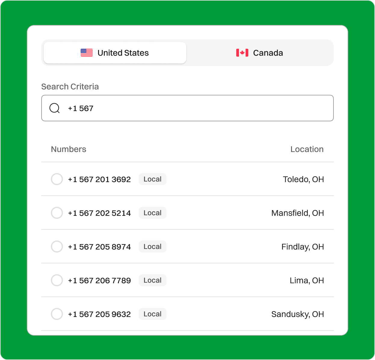 Improve your call acceptance rate in the local market using 567 Ohio area code local and custom vanity numbers. Ensure better performance rates and productivity for your employees, and more importantly, deliver an exceptional customer experience to boost your sales.