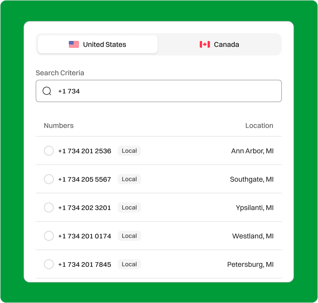 Boost Customer Trust in Michigan with a 734 Area Code Phone Number Connect your business to the diverse and thriving communities of southeast Michigan with a 734 area code number from Dialaxy. With coverage across cities like Ann Arbor, Monroe, and Ypsilanti, a 734 phone number creates local trust and improves reach for businesses targeting this vibrant region. Sign upRequest a Demo Endorsed by top industry leaders Trusted by industry experts for excellence and innovation. What is area code 734? The 734 area code is located in southeastern Michigan, USA. It includes major cities such as Ann Arbor, Southgate, Ypsilanti, Westland, and Petersburg, as well as four counties: Livingston, Wayne, Monroe, and Washtenaw. The area code 734 is located in the Eastern timezone (ET). In standard time, the time zone is 5 hours behind Coordinated Universal Time (UTC/GMT), whereas during daylight saving time, the time zone is 4 hours behind UTC/GMT. The population of the 734 area code is over 3,888,312. Its nearby area codes are 248/947 (Troy, MI), 313 (Detroit, MI), 517 (Lansing, MI), 810 (Flint, MI), and 586 (Warren, MI), and zip codes within the 734 area code are 48103 (Ann Arbor), 48197 (Ypsilanti), 48187 (Canton), and 48170 (Plymouth). Country USA State Michigan Major City Detroit Time Zone Eastern Time Zone (EST) Telephone Number Format +1 (734)-XXX-XXXX Example of 734 phone number +1 (734)-123-4567 Zip Code 48101-48377 How to get a 734 Area Code Phone Number? You can purchase a 734 area code phone number from a VoIP service provider like Dialaxy. You can follow these steps. Sign up on the official Dialaxy website or mobile app. Log in to your account and navigate to the dashboard. Select “My Number” from the “Portal” menu. Click on “Buy Number.” Choose the US as your country and select the 734 area code from the list. Complete the payment and submit any required documents. How does a 734 business Phone Number work? The 734 business phone number follows a format similar to a regular phone number in the USA. It is part of the North American Numbering Plan (NANP) and requires dialing the entire 10-digit number, including the area code, to make a call. The business numbers with an area code of 734 can work with both cloud-based and on-premises telephone systems. Businesses can receive calls and messages from anywhere using cloud-based systems, extending beyond area code 734. They are also more flexible, scalable, and affordable. To reach the 123-4567 number, dial +1 (734) 123-4567. The “1” denotes the United States as the country code, “734” is the area code that routes the call to the appropriate region in southeastern Michigan, “123” is the central office code that directs the call to a particular carrier, and “4567” is the subscriber number that designates the specific company or person receiving the call. Who’s doing business in the 734 Area code? The 734 area code is used by various businesses across southeastern Michigan, particularly in Ann Arbor, Westland, and Southgate. The 734 area code is a vibrant and diverse business ecosystem, encompassing a range of industries and companies that contribute to the economy of Southeastern Michigan. The 734 area code serves a diverse consumer base, supporting various retail businesses, restaurants, healthcare providers, and professional services firms. Here are some of the top businesses that use this area code: Educational institutions University of Michigan, Eastern Michigan University Real Estate Re/Max of Ann Arbor, Coldwell Banker Weir Manuel Other major businesses Blue Cross Blue Shield of Michigan, Domino’s Pizza, Firth Third Bank Why Does Your Business Need a 734 Area Code Number? Appear Locally in Ann Arbor from Anywhere Even if you're running your company remotely, you may create a local presence in Ann Arbor using the 734 phone number. This localized look may help you attract clients in the Ann Arbor area by making your company more approachable and recognizable. Improve your Business Credibility and Trustworthiness A local 734 phone number increases your company's legitimacy and dependability among Ann Arbor residents. Consumer interactions with local companies are strengthened when they have an identifiable local area code, which increases consumer trust and engagement. No Extra Hardware Needed Dialaxy's virtual phone numbers do not require additional hardware, making them a convenient and cost-effective option for businesses. You can manage all your business calls directly from your computer or smartphone without requiring additional equipment, ensuring you stay connected and responsive. Run Marketing Campaigns With Dialaxy, you can acquire vanity numbers to create a memorable and easily recognizable business phone number. This strategy enhances marketing effectiveness, boosts customer recognition, drives engagement, and fuels business growth. Advanced Business Features Dialaxy includes features such as Call Barging, Number Sharing, IVR, and Call Forwarding, improving customer service efficiency. Integrates with Business Tools Your 734 number works seamlessly with CRM software and other business tools, enabling you to track customer interactions and enhance productivity. Enjoy 100+ Dialaxy’s features with local phone number Call, SMS, & Contact in one easy to use app. Phone Numbers Global Calling SMS Voicemail Number Sharing Contacts All Features Phone Numbers Expand your reach with Virtual Phone Numbers International Numbers: Establish a local presence of your business with our international phone numbers . Toll Free Numbers: Elevate your sales strategy and drive business growth with Toll Free Numbers. Multiple Phone Numbers: Use multiple phone numbers in one single dashboard. Explore our apps Global Calling Connect globally with effortless calls Extended Reach: Enables businesses to expand their market by reaching international customers. Flexibility: Allows employees to make international calls from anywher