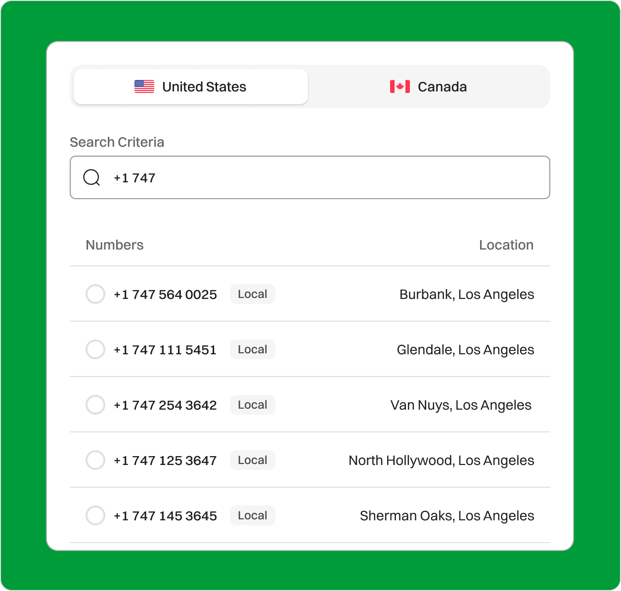 Boost Your Presence with a 747 Area Code Virtual Phone Number Get a virtual number in Los Angeles with the area code 747. With Dialaxy, you will be able to build credibility and save time in managing communications, which will give your business a local presence in a professional manner. Sign upRequest a Demo Endorsed by top industry leaders Trusted by industry experts for excellence and innovation. What is area code 747? The 747 area code is located in California, USA, and serves the San Fernando Valley within Los Angeles County. It was introduced to meet the growing need for phone numbers in this densely populated region. The 747 area code covers much of the San Fernando Valley, including cities like Burbank, Glendale, Van Nuys, North Hollywood, and Sherman Oaks. Its primary location is in Los Angeles, a vibrant region known for its dynamic population and a wide range of business and cultural activities. Despite the existence of more traditional single-code areas, the 747 area code functions alongside 818, allowing flexibility and consistency with the region. The 747 area code works in the Pacific Time Zone (PT), serving business telephone systems in various time zones while staying synchronized with standard time on the West Coast. Country USA State California Major City Burbank, Glendale, Van Nuys, North Hollywood, and Sherman Oaks Time Zone Pacific Standard Time (PST) (UTC – 8 hrs) Telephone Number Format +1 (747) XXX-XXXX Example of 747 phone number +1-747-230-7777 Zip Code 91331 to 91394 How to get a 747 area code phone number? You can buy a 747 area code phone number from a VoIP service provider. Dialaxy is a reputable service provider to get area code 747. Follow the given steps to get one: Sign up via the official website or mobile app. Log in with your credentials to access your dashboard. Click the “My Number” option under the “Portal” menu. Select the “Buy Number” option. Choose “US” as the country and select the desired 747 area code from the list. Make payment and submit necessary documents if required. How does the 747 business phone number work? Here are the steps on how it works: Step 1: Dialing the Number To make a call, dial the 10-digit number beginning with the 747 area code. Step 2: Identifying the Area Code The telecom network identifies the 747 area code, confirming the Los Angeles destination. Step 3: Routing the Call After identification, the system directs the call to the San Fernando Valley, including such cities as Woodland Hills, Encino, and even Sherman Oaks. Step 4: Identifying the Local Exchange Carrier The network identifies the correct Local Exchange Carrier (LEC) responsible for the recipient in the area code 747. Step 5: Connecting the Call The call is completed and transferred to the LEC, ensuring quality connection service for both phone calls and text messages. Dialing a 747 Number: Country Code (1): For the United States. Area Code (747): Routes call to the 747 area. Local Exchange (e.g., 300): Three digits unique to the local exchange. Subscriber Number (e.g., 7890): Four digits for the line number. The business opportunities with Dialaxy include intelligent call routing, auto-attendants, and text message support, enabling better customer communications wherever you are. Who’s doing business in area code 747? Technology Cast & Crew is based in Burbank and provides luminary software and payroll to the production industry in the Los Angeles County area using 747 phone numbers. With a 747 phone number, companies get a chance to be in the limelight in a market that has many opportunities and innovation. Healthcare Glendale Adventist Medical Center uses secure business phone systems to reach its patients and employees in real-time. Healthcare providers, including healthcare private practices and urgent care centers, use the 747 area code system. Media & Entertainment Nickelodeon Animation Studio operates in the 747 area code, where companies can enjoy steady infrastructure performance. It is ideal for casting requirements, editing, and media operations that require quick dial and texting services that are locally based. Retail & Services Whether it is boutique shopping or shopping for personal care, businesses with the 747 area code in the USA ensure they maintain their presence in a competitive market. The Galleria in Sherman Oaks is one of the central stores in the area that embraces the 747 area code phone number system when communicating with customers across the board. Education Glendale Community College is using the localized business phone infrastructure to reach its students, parents, and personnel through the Pacific time zone. Educational centers and learning institutions in the 747 area of the USA depend on using the internal communication of the 747 area code phone number, as well as family communication. Finance TaxRise is a financial consultancy company that provides IRS and tax relief services, which the company does through the use of the 747 area code phone number as a cloud-based business telephone system. They are compliant since they use tools such as call routing, secure messaging, and power dialers to improve customer communication in their entire region of the San Fernando Valley. Expand your business influence by securing a 747 area code through Dialaxy, giving you a solid foothold in one of California’s most prosperous regions. What are the benefits of using Dialaxy's 747 phone number for your business? Build a Local Presence Using a 747 number instantly helps your business feel like a part of the San Fernando Valley community. Whether you’re based in Burbank, Van Nuys, or any other area, having a familiar area code builds instant trust within the community. Professional Image A 747 area code enhances your business in the Greater Los Angeles area. It gives your brand a polished, credible appearance and signals that you’re invested in serving the region. Wide Service Reach Across the Valley The 747 a