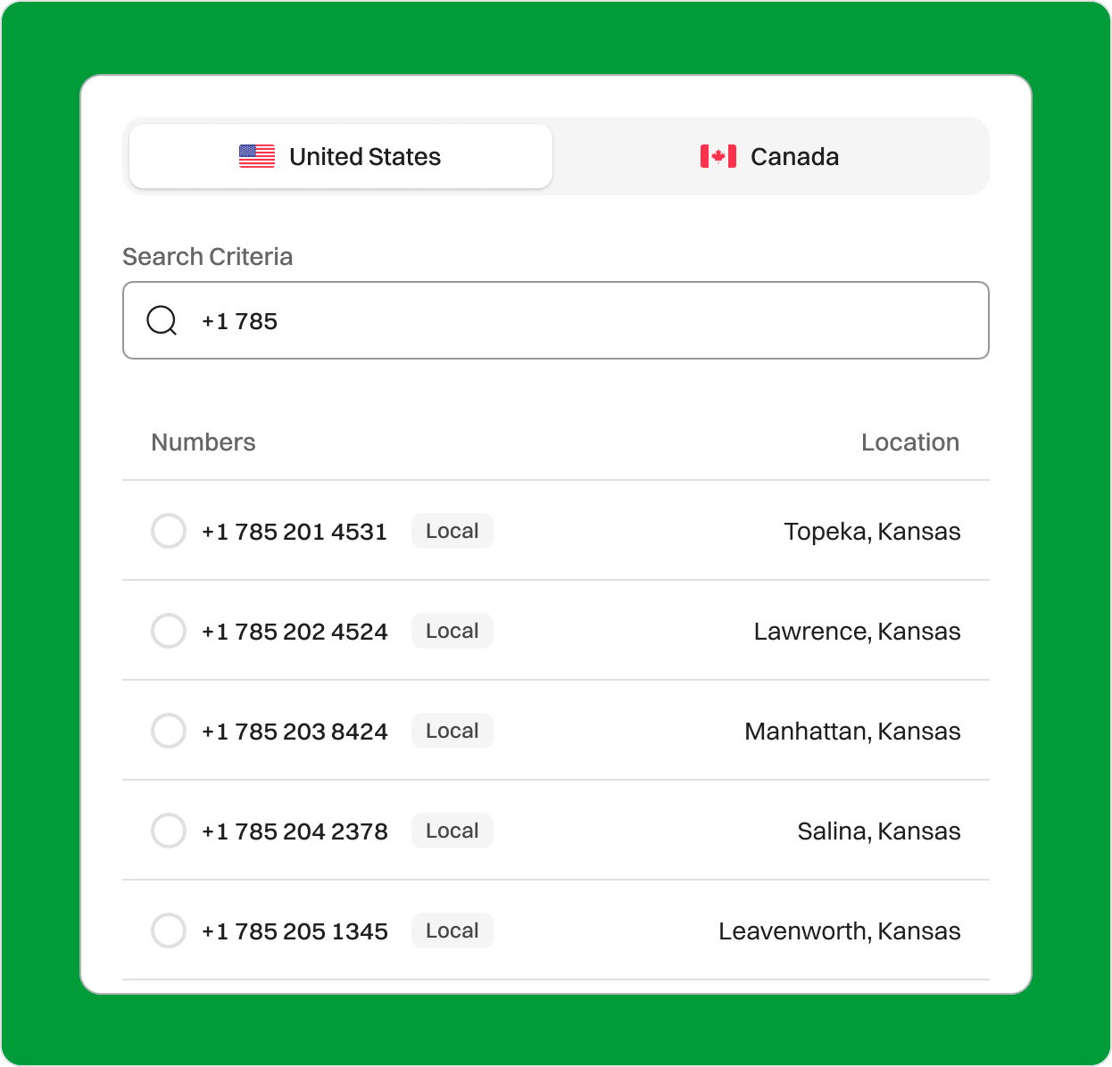Unlock New Opportunities with a 785 Area Code Virtual Phone Number! Are you willing to take your business into the expansive state of Kansas? Get to learn how to create a virtual number using the 785 area code to increase the presence of your business in this highly prosperous market. Sign upRequest a Demo Endorsed by top industry leaders Trusted by industry experts for excellence and innovation. What is the 785 Area Code? The area code 785 is limited to an extent to the northeastern parts of Kansas and covers a very expansive region which encompasses the state capital, Topeka. It is an area with a rich history, pleasant spots of nature, and an urban-rural hybrid. Other significant areas and cities that are encompassed by the area code 785 are Lawrence, Manhattan, Salina, and Leavenworth. The 785 area code was initiated in 199,s in response to the soaring phone number requirements in this developing region, which then incorporated the initial area code, 913. Located in the Central Time Zone (UTC-6), companies with a 785 area code number have the benefit of reaching their local customers and associates when traditional business hours are in effect in Kansas. The 785 has a rather extensive territory that includes areas of great cultural heritage and economic potential, being one of the most critical communication connections of the business established in and around the capital and other cities within the region. Country USA State Kansas Major City Topeka Time Zone Central Time Zone Telephone Number Format +1 (785) XXX-XXXX Example of 785 phone number +1-785-205-0123 How to Get a 785 Area Code Phone Number? Using Dialaxy, it is easy and swift to get a virtual phone number of the 785 area code. Dialaxy offers an easy flow that enables you to relate in one of the successful markets in Kansas. Follow these steps to secure your 785 number: Sign up on the official Dialaxy website or mobile app. Log in to your account and navigate to the dashboard. Select “My Number” from the “Portal” menu. Click on “Buy Number.” Choose the US as your country and select the 785 area code from the list. Complete the payment and submit any required documents. Your new 785 area code number will be activated, ready for all your business communication needs, powered by Dialaxy’s VoIP technology. How Does a 785 Business Phone Number Work? Area code (785) is a North American Numbering Plan (NANP) and serves a diverse region of the state of Kansas whose cultural and historical values are of great importance. With a local 785 number, your business becomes a local presence in this friendly market, putting you in touch with customers and local business partners. Dialing the number in the 785 area code is: +1 (785) 205-0123: The country code of the United States is 1. The area code assigned the code 785, which forwarded the call to the northeast of Kansas. The local exchange code is 205, and this is followed by the exact subscriber number of 0123. Having a 785 business phone number is the best idea, as Dialaxy provides you with even more features, such as making calls, call forwarding, sending and receiving SMS, programmed responses to calls, and getting a better analysis of the calls you have received in real-time. Who is Doing Business in the 785 Area Code? The 785 area code covers a region full of opportunity. It includes major cities like Topeka, Lawrence, and Junction City, all known for their diverse economies and strong community ties. The code map places this region firmly in the central time zone under the North American Numbering Plan. Let’s take a closer look at the industries shaping this area. Education Lawrence is home to the University of Kansas. This major city provides talent, research, and a consistent pipeline of innovation. Many education-related businesses in the Kansas area code zone use local phone systems to support administration and student services. Government Topeka, the capital, hosts several government agencies. That brings growth for legal firms, IT providers, and consultancy services. It also creates steady demand for business phone solutions and code phone setups that support day-to-day operations. Healthcare The healthcare industry is strong here. Hospitals and clinics stretch across the 785 zone. Most providers use systems built around the numbering plan, ensuring reliable communication in this code time zone. Retail You’ll find everything from local shops to large retailers. The region’s numbering plan supports small businesses and large franchises alike. Many stores also operate on local phone networks for sales and support in major cities like Topeka and Lawrence. Agriculture Kansas has deep agricultural roots. The 785 zone supports businesses in agri-tech, food supply, and farming. These companies benefit from code map alignment that simplifies contact across time zones and regions. Having a 785 number makes your company part of this vibrant network. It aligns you with the Kansas area codes trusted by residents and enterprises. Whether you need local phone access or want to expand your business phone presence, this area code places you right where it matters. Why Choose the 785 Area Code for Your Business? Find a place at the Local level in Kansas. An area code of 785 immediately connects your business with Kansas, making it more credible, brighter, friendlier, and an easy-going market. Although your company may be based far away in a different location, a local number can enable you to communicate with customers in the state without difficulties. Increase Customer Confidence and Purchases Customers have a tendency to trust local numbers compared to unknown numbers. Your clients in Kansas will be more inclined to engage your business activities, therefore, resulting in more customer interaction and an eventual conversion by using a 785 area code number. No Special Hardware Needed With Dialaxy VoIP, your 785 area code number can be put to use on up to 2 gadgets. You 