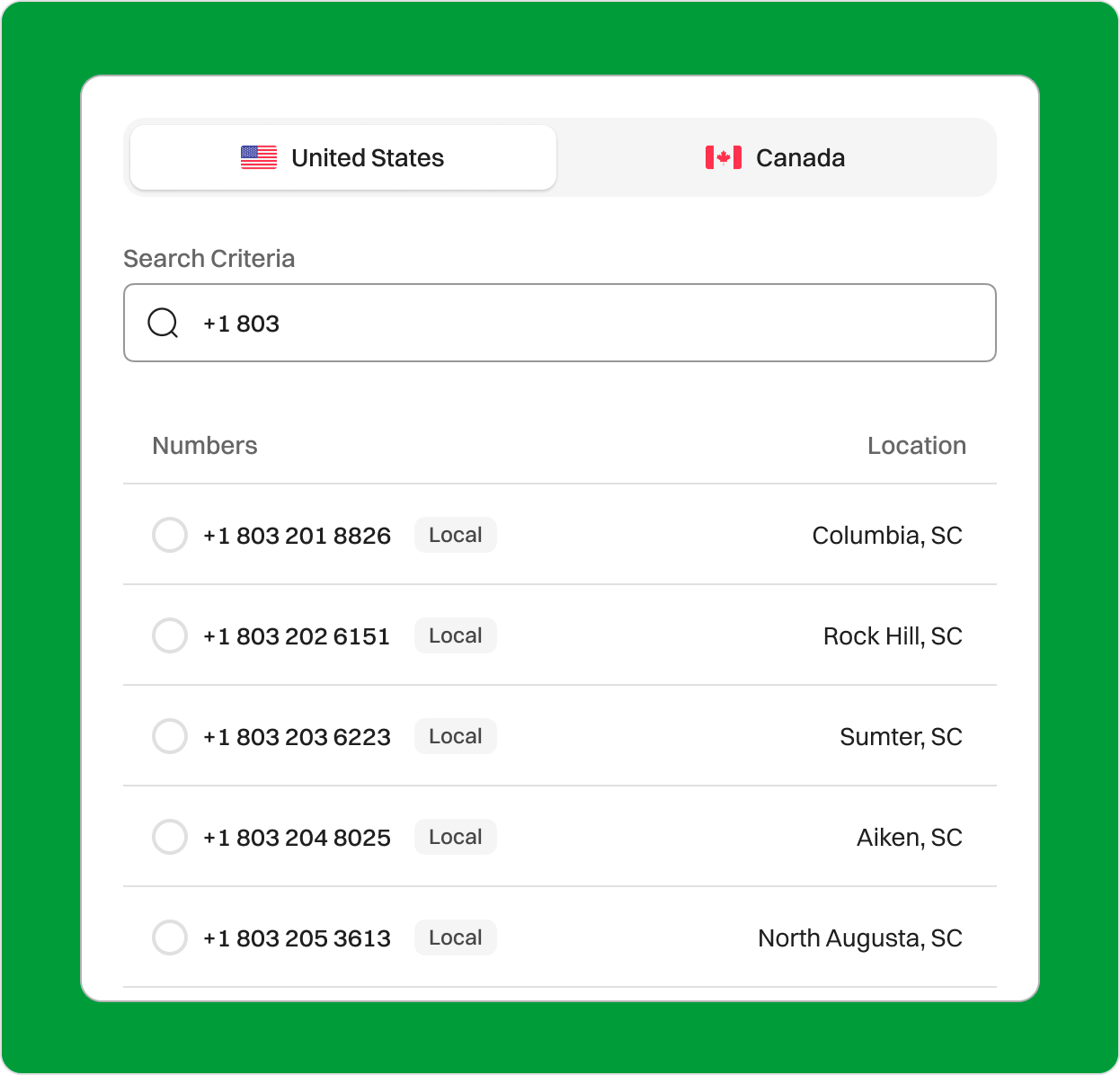 Expand Your Reach with an 803 Area Code Virtual Number in South Carolina! Looking to establish a strong foothold in central South Carolina? An 803 area code phone number connects you with customers in major cities like Columbia, Rock Hill, Sumter, and Aiken, enhancing your local presence and building trust with your target audience. Sign upRequest a Demo Endorsed by top industry leaders Trusted by industry experts for excellence and innovation. What is area code 803? Area code 803 is located in the central region of South Carolina, covering major cities like Columbia, Rock Hill, and Lexington and surrounding counties, including Richland, Lexington, York, and Aiken. Area code 803 was the original 86 area code created by AT&T and the Bell System in 1947, serving the entire state of South Carolina. Area code 803 was split in 1995, making the need to update some of the phone numbers to the 864 area code. However, due to telephone service growth, the coastal area was assigned a separate code (843) in 1998. In 2020, area code 839 was implemented as an overlay to accommodate the continued rise in phone numbers, especially in Columbia and the surrounding suburbs. This overlay made ten-digit dialing mandatory in the 803/839 region. The prefix 803 follows the Eastern timezone, which is known as Eastern Standard Time (EST) or Eastern Daylight Time (EDT), depending on the season. You can also find some nearby area codes in this region, including 423 (Chattanooga, TN), 472/910 (Fayetteville, NC), 478 (Macon, GA), 704/980 (Charlotte, NC), 706/762 (Augusta, GA), 803/839 (Columbia, SC), 828 (Asheville, NC), 843/854 (Charleston, SC), 864 (Greenville, SC), 912 (Savannah, GA). Country USA State South Carolina Major City Columbia Time Zone Eastern Time Zone(ET) Telephone Number Format +1 (803)-XXX-XXXX Example of 803 phone number +1 (803)-718-4567 Zip Code 29801-29745 How to get an 803 Area Code Phone Number? You can purchase an 803 area code phone number from a VoIP service provider like Dialaxy. You can follow these steps. Sign up on the official Dialaxy website or mobile app. Log in to your account and navigate to the dashboard. Select “My Number” from the “Portal” menu. Click on “Buy Number.” Choose the US as your country and select the 803 area code from the list. Complete the payment and submit any required documents. How does an 803 Area Code Business Phone Number work? An 803 area code business phone number works just like any other US-based phone number. Callers can reach the number by dialing the full 10-digit number, including the area code. For example, to reach a business in Columbia, a caller might dial +1-803-718-1234, where +1 is the country code for the US, and 803 routes the call to central South Carolina. Dialaxy’s basic plan starts at just $20/user/month, making it affordable even for small businesses. Who’s doing business in the 803 Area code? Columbia, the state capital, is the largest city in the 803 area code. Richland and Lexington are the major counties in the region. South Carolina’s economy reached $300 billion in 2024, with an average annual growth rate of 1.8%. Businesses employed over 2 million people in the state, with key industries such as healthcare, manufacturing, and education driving economic growth. Prominent employers in the 803 area code include: Prisma Health BlueCross BlueShield of South Carolina University of South Carolina Michelin North America Dominion Energy Why Does Your Business Need an 803 Area Code Number? Establish a Local Presence An 803 area code phone number gives your business a local identity, allowing you to connect authentically with customers in Columbia, Rock Hill, and surrounding areas. Boost Customer Engagement Local phone numbers help bridge the gap between your business and its customers. Customers are more likely to pick up the phone or respond to inquiries when they see a familiar area code. Advanced Features Dialaxy offers a range of advanced features to make your business communications more efficient. With call forwarding, you can ensure that no call goes unanswered, while voicemail-to-email ensures you never miss a message. Professional Image A local 803 area code number boosts your business's professionalism and adds credibility in the eyes of your customers. Having a local presence signals to customers that you’re an established entity in the community, fostering greater trust and confidence. It helps your business stand out as reliable, approachable, and trustworthy. No Extra Hardware Needed Dialaxy’s VoIP solutions allow you to use your existing devices, whether it’s a smartphone, tablet, or desktop, to manage your 803 area code number. Expand Regional Reach With an 803 area code, you can tap into the growing population and economic opportunities in South Carolina, whether you're targeting local residents or businesses. Enjoy 100+ Dialaxy’s features with local phone number Call, SMS, & Contact in one easy to use app. Phone Numbers Global Calling SMS Voicemail Number Sharing Contacts All Features Phone Numbers Expand your reach with Virtual Phone Numbers International Numbers: Establish a local presence of your business with our international phone numbers . Toll Free Numbers: Elevate your sales strategy and drive business growth with Toll Free Numbers. Multiple Phone Numbers: Use multiple phone numbers in one single dashboard. Explore our apps Global Calling Connect globally with effortless calls Extended Reach: Enables businesses to expand their market by reaching international customers. Flexibility: Allows employees to make international calls from anywhere. Seamless Communication: Ensures clear and reliable communication with international contacts. Learn More SMS Enhance communication with SMS capabilities A2P 10DLC: Register your number in A2P 10DLC to send sms within US and Canada. Schedule SMS: Schedule SMS as per your customer timezone so they don’t miss an update. Personalised Messaging: Persona
