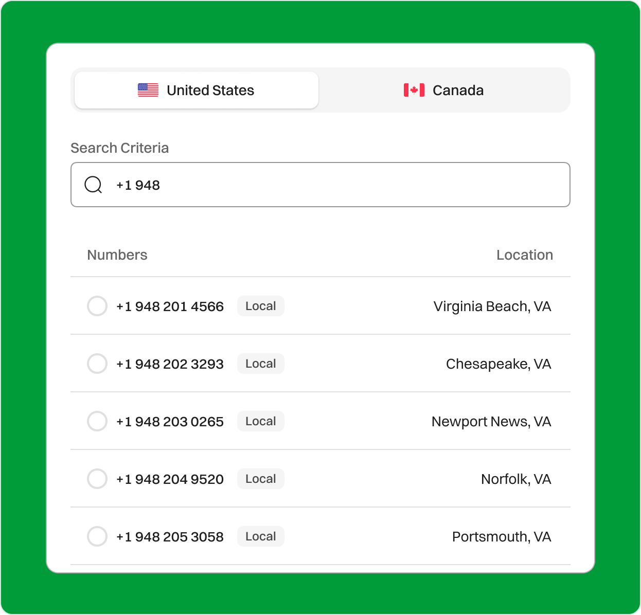 Establish a compelling presence in the competitive market in Southeastern Virginia to have an immediate virtual local number with number 948 as the area code. Whether you’re a growing startup or an existing company that wants to grow in the Hampton Roads region, a 948 number gives a sense of trust.