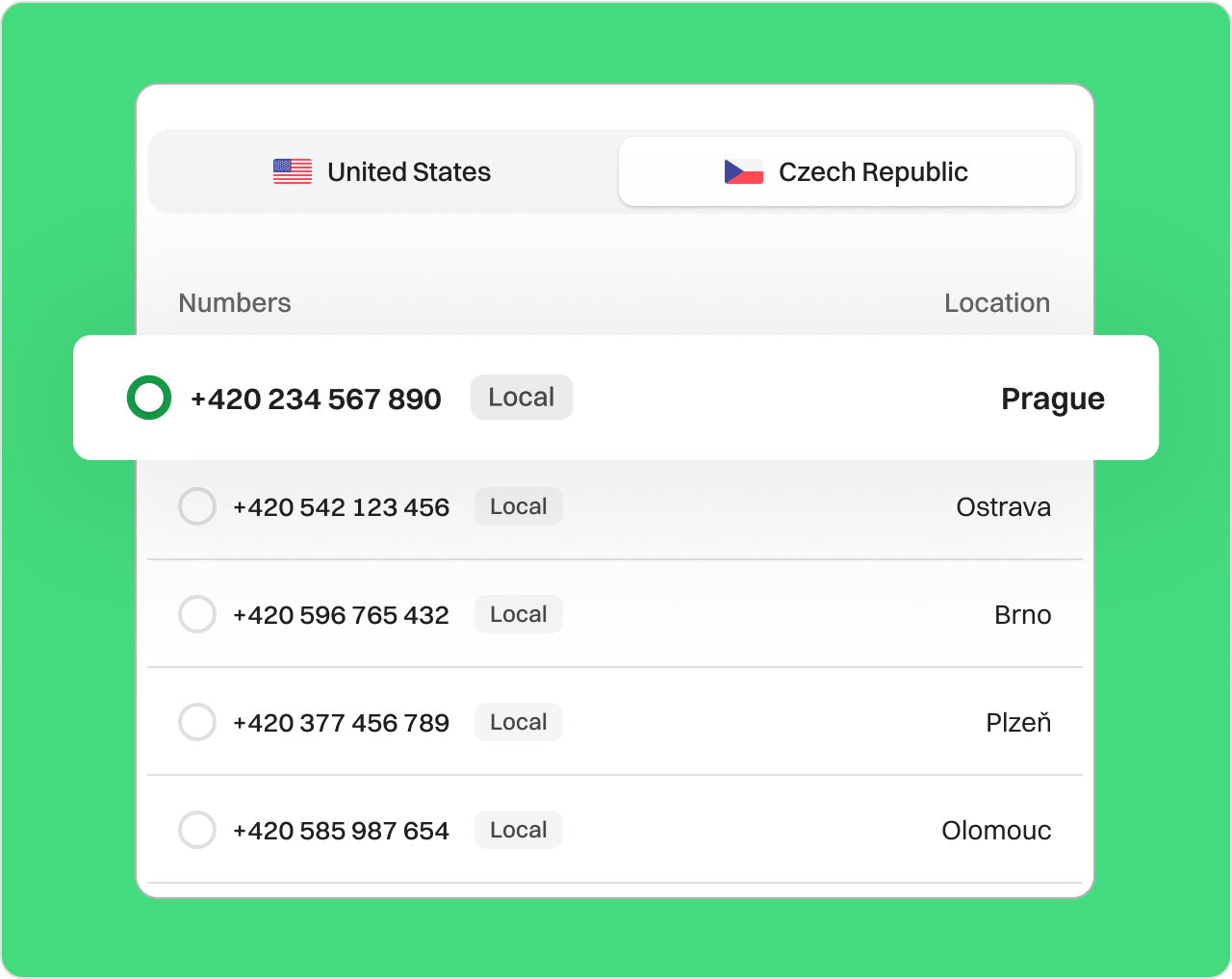 Get an Czech Republic Virtual Number Do you need a business phone number in the Czech Republic? As digital communication becomes the norm, now’s the right time to go virtual. A free Czech Republic virtual phone number is a wise choice for both personal and professional needs. Sign up via the provider's website or mobile app. Instantly manage, forward, and monitor your incoming calls. Forward calls to your mobile, landline, or desktop device worldwide. Sign upRequest a Demo Endorsed by top industry leaders Trusted by industry experts for excellence and innovation. How to Buy a Czech Republic Virtual Number from Dialaxy? Getting a virtual number in the Czech Republic is easy with Dialaxy. They are a trusted VoIP provider that offers cloud phone solutions worldwide. You don’t need local paperwork or a Czech SIM card. To set up your number in minutes, simply follow these steps: Create an account on the official site or app. Sign up via the official website or mobile app. Log in with your credentials to access the dashboard. Click the “My Number” option under the “Portal” menu. Select the “Buy Number” option. Choose “Czech Republic” as the country and select the desired Israel area code from the list. Complete your payment and upload any required identification documents. What is the Czech Republic Virtual Phone Number? A Czech virtual phone number appears to be a local mobile or landline number. However, it works through the internet, not a regular phone line. It’s cloud-based and doesn’t require a physical SIM or location. It uses VoIP technology. This lets users make calls or send texts from their mobile phones, computers, or tablets, no matter where they are. The number follows the Czech phone format. It starts with +420, which is the country code for the Czech Republic. Then, it has a 9-digit number that can change based on the region. How Does a Czech Republic Phone Number Work? When someone calls your Czech virtual phone number, the call is routed over the internet. It does not use traditional phone lines. Your voice is changed into digital data. It is sent over a secure network. When it reaches the recipient, it is converted back into audio. This process happens in real-time and is powered by VoIP technology. It makes your virtual number sound and work just like a real Czech landline or mobile number. No delays. No dropped calls. Just crystal-clear communication. You can receive and make calls, as well as send SMS and MMS messages, through supported apps, depending on your plan. Additionally, you can forward calls to your personal number in another country, without the caller being aware. Why Buy Local Czech Republic Phone Numbers from Dialaxy? Quick and Easy Setup Need a Czech business number fast? With Dialaxy, you can get started in just minutes. No hardware, no local registration, and no waiting time. Simply sign up, select your area, and your number will go live. Make Calls Appear Local When you call customers in the Czech Republic, your number appears local. This builds instant trust and increases the likelihood that your call will be answered. It also improves your response rate if you're running local campaigns. Fast and Flexible Number Selection Dialaxy offers numerous area codes for major Czech cities. This includes Prague (2xx), Brno (5xx), and Ostrava (5xx). You can even get vanity numbers that match your brand or choose multiple numbers for different departments or teams. Share and Use Instantly Once your Czech number is activated, you can share it with customers, add it to your website, or include it in email signatures. People can call, text, or leave voicemails—all of which can be forwarded to your preferred device. Budget-Friendly Plans Need a number without burning a hole in your pocket? Dialaxy offers Czech Republic virtual numbers starting from just $10 /month. Plans include call forwarding, voicemail, SMS, and more, without setup fees or long-term contracts. Build Local Presence and Trust Having a Czech number improves local visibility and helps customers feel more comfortable calling or answering your business. It also supports local marketing strategies by allowing you to target specific regions and track performance. Enjoy 100+ Dialaxy’s features with local phone number Call, SMS, & Contact in one easy to use app. Phone Numbers Global Calling SMS Voicemail Number Sharing Contacts All Features Phone Numbers Expand your reach with Virtual Phone Numbers International Numbers: Establish a local presence of your business with our international phone numbers . Toll Free Numbers: Elevate your sales strategy and drive business growth with Toll Free Numbers. Multiple Phone Numbers: Use multiple phone numbers in one single dashboard. Learn More Global Calling Connect globally with effortless calls Extended Reach: Enables businesses to expand their market by reaching international customers. Flexibility: Allows employees to make international calls from anywhere. Seamless Communication: Ensures clear and reliable communication with international contacts. Learn More SMS Enhance communication with SMS capabilities A2P 10DLC: Register your number in A2P 10DLC to send sms within US and Canada. Schedule SMS: Schedule SMS as per your customer timezone so they don’t miss an update. Personalised Messaging: Personalise SMS depending upon your user and its behaviour. Learn More Voicemail Easily manage messages with Voicemail Voicemail Recording: Personalized voicemail greetings for different departments Message Management: Messages are stored in the cloud, allowing for easy access. Access and Playback: Listen to voicemails from any internet-connected device. Learn More Number Sharing Enhance collaboration with effortless Number Sharing Unified communication: With number sharing, multiple devices can use the same phone number. Convenience: Seamlessly switch between devices without missing calls or texts. Cost Efficiency: Reduce costs by eliminating the
