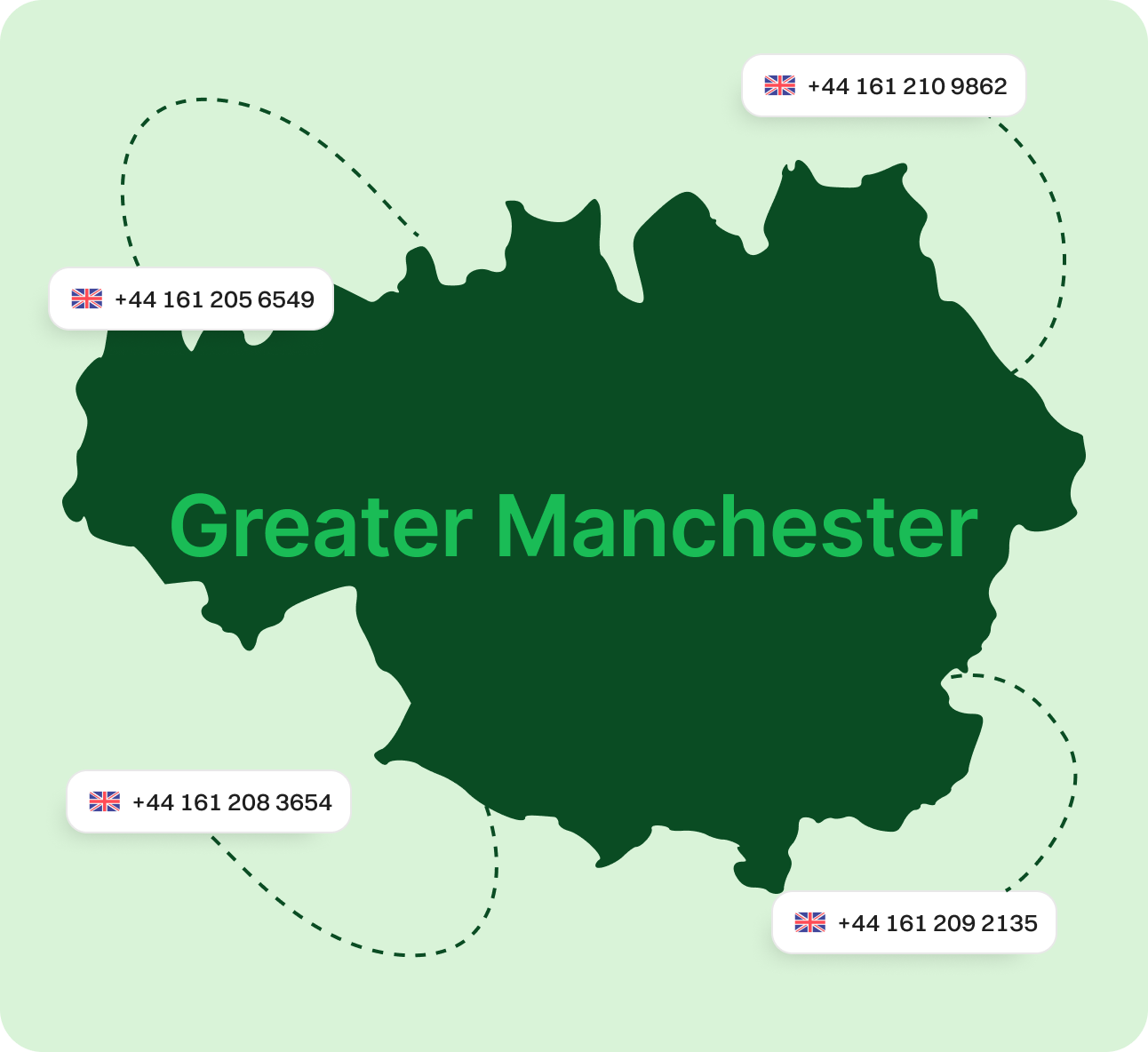 Get Your Greater Manchester Virtual Number Today! Establish a trusted local presence across Greater Manchester, serving key cities such as Manchester, Stockport, and Salford. A virtual phone number eliminates long-distance barriers, enhances customer outreach, and provides your business with a professional presence, all without the need for physical office space. Sign upRequest a Demo Endorsed by top industry leaders Trusted by industry experts for excellence and innovation. What Is a Greater Manchester Phone Number? A virtual phone number for Greater Manchester uses VoIP (Voice over Internet Protocol) technology to transmit voice over the internet connections. This setup lets you make and take calls from any location without relying on fixed landlines. You’ll enjoy high-quality calls and a local business identity, even if you operate outside the region. It’s an ideal solution for companies working with customers throughout the UK, including nearby places like Merseyside, Cheshire, and West Yorkshire. This setup enhances accessibility and facilitates smooth communication, of your location. How Does a Greater Manchester Virtual Number Operate? Virtual phone numbers in Greater Manchester run entirely through the internet using VoIP platforms. Rather than using outdated telephone networks, your calls are converted into digital data and transmitted instantly. Whether your team works remotely or on-site, this ensures fast and stable connections. Calls can be forwarded to any internet-enabled device, such as laptops, mobile phones, or VoIP phones, making it a top choice for remote workers and businesses that want to appear local in Manchester or Salford. What Can You Do With Greater Manchester Phone Numbers? Make & Receive Calls Send & Receive Texts Separate Work & Personal Establish Local Presence Boost Marketing Efforts Make & Receive Calls Stay connected across Greater Manchester’s cities and towns. Get Started Send & Receive Texts Communicate with customers in Manchester, Salford, and Stockport via SMS. Get Started Separate Work & Personal Keep communications distinct; ideal for remote teams or freelancers. Get Started Establish Local Presence Use a Manchester or Stockport number to build local trust, even if remote. Get Started Boost Marketing Efforts Improve campaign engagement in a high-density urban and business region. Get Started More Ways Dialaxy Supports Your UK Business Higher Customer Response Rates 0161 numbers increase trust, which results in more answered calls and returned messages. UK-Wide Number Access Easily add virtual numbers for surrounding areas like West Yorkshire and Merseyside. Simple Number Porting Transfer your current Greater Manchester number to Dialaxy without any hassle. Sector-Focused Tools Tailored features for logistics, healthcare, media, and finance. Consistent Caller ID Appears reliably local no matter where you're calling from. Specific Area Codes for Greater Manchester Area Code Region Covered 0161 Manchester, Salford, Stockport, and nearby areas Why Choose Dialaxy for Your Greater Manchester Virtual Phone Number? Flexible Plans Perfect for small businesses, growing teams, and large call centres. Quick Setup Select 0161 and get your virtual number up and running in minutes. Scalable for Growth Add more numbers as you expand across the North West region. 24/7 Customer Assistance Reliable support, no matter your operating hours. Advanced Call Tools Get voicemail-to-email, analytics, call forwarding, and smart routing. Affordable Pricing Connect across Greater Manchester without overspending. How to Get a Greater Manchester Number with Dialaxy? Step 1 Create an Account Sign up on Dialaxy with your business or personal email. Step 2 Go to "Add New Number" Navigate to your unified dashboard. Step 3 Choose United Kingdom > Greater Manchester Select your desired region. Step 4 Pick Your Area Code Choose 0161 for Manchester and surrounding areas. Step 5 Make Payment and Verify Complete your transaction and submit verification. Step 6 Activate and Use Your new virtual number is ready in just minutes. Grow Your Business with a Greater Manchester Area Code Prime UK Location Greater Manchester ranks among the UK’s top business regions. A local 0161 number puts your brand on the map in a commercially competitive zone. Fits Every Industry Whether you're in logistics, digital media, legal services, or healthcare, a Greater Manchester number supports stronger engagement and a professional appearance. Expand Effortlessly Create the impression of a local base in Manchester—even if your headquarters are somewhere else. These numbers drive more interaction and fewer missed opportunities. Stay Connected Use VoIP to stay available across all platforms. Route your calls seamlessly to the devices you use most. Built for Business This area sees strong public investment and growing infrastructure. A local number gives you a competitive edge in a thriving marketplace. Perfect for Startups Entrepreneurs and small teams can build trust from day one with a Manchester-based virtual number no brick-and-mortar setup required. Explore More UK Regions West Yorkshire Cheshire Dorset Oxfordshire South Yorkshire West Midlands Surrey Essex Cumbria View all Frequently Asked Questions What is a Greater Manchester virtual phone number?It’s a VoIP-powered number that lets you make and receive calls using the 0161 area code—no physical phone line required. Can I select my preferred area code?Yes. You can choose 0161 to represent Manchester, Stockport, or Salford. Is physical presence in Manchester needed?No. These numbers work globally, making them ideal for UK-based or international businesses alike. What does it cost?Dialaxy offers cost-friendly plans to suit different business sizes and needs. Can I send SMS with my 0161 number?Yes, texting is available for most Dialaxy virtual phone plans. Can I move my existing number to Dialaxy?Absolutely. You can port your 0161 number with n