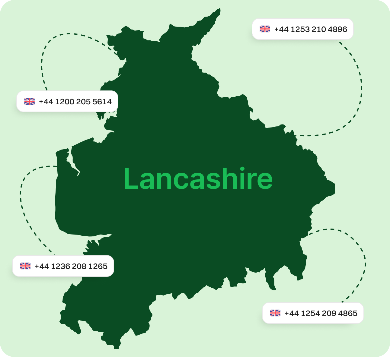 Get Your Lancashire Virtual Phone Number Today! Establish a local presence in Lancashire, covering key towns like Blackburn and Burnley. A virtual phone number boosts your reach, cuts down long-distance charges, and connects you with UK customers, no office required. Sign upRequest a Demo Endorsed by top industry leaders Trusted by industry experts for excellence and innovation. What Is a Lancashire Phone Number? A Lancashire virtual phone number uses VoIP (Voice over Internet Protocol) to send voice as data over the internet. This lets you make and receive calls from anywhere without relying on landlines. It delivers clear, reliable communication and a local identity, even if you’re based elsewhere. Perfect for businesses operating across the UK, including Greater Manchester, Merseyside, and Cumbria, a Lancashire number helps simplify operations and maintain seamless connectivity. How Does a Lancashire Virtual Phone Number Work? Lancashire virtual numbers operate on VoIP systems, which utilize your internet connection for all calls. When someone dials your number, their voice converts instantly into data packets. This results in stable call quality with little delay, wherever your team is based. Calls route to any device, mobiles, desktops, or VoIP phones, making this ideal for call centres or remote teams targeting key Lancashire cities like Blackburn. What Can You Do With Lancashire Phone Numbers? Make & Receive Calls Send & Receive Texts Separate Work & Personal Establish Local Presence Boost Marketing Efforts Make & Receive Calls Connect across Lancashire's business hubs and town centres. Get Started Send & Receive Texts Reach customers in Blackburn and nearby areas through SMS. Get Started Separate Work & Personal Keep work calls apart from personal ones—great for freelancers and hybrid teams. Get Started Establish Local Presence Build trust using familiar area codes like 01254 for Blackburn. Get Started Boost Marketing Efforts Increase engagement with targeted campaigns tied to local area codes. Get Started More Ways Dialaxy Supports Your UK Business Improved Customer Engagement Lancashire numbers increase call pickup rates and SMS replies. Nationwide UK Coverage Add numbers in nearby counties like Merseyside, Greater Manchester, and Cumbria. Effortless Number Portability Move your local number to Dialaxy easily, with no long-term contracts. Industry-Specific Tools Whether it’s finance, healthcare, or tourism, our tools adapt to your business. Brand Consistency Use your Lancashire number across platforms to support unified branding. Specific Area Codes for Lancashire Area Code Region Covered 01200 Clitheroe, UK 01253 Blackpool, UK 01254 Blackburn, including nearby business zones 01236 Airdrie and Coatbridge, UK 01282 Burnley and the surrounding commercial centres 01257 Coppull Why Choose Dialaxy for Your Lancashire Virtual Phone Number? Flexible Plans Affordable for startups, scalable for enterprise. Quick Setup Choose a code (e.g., 1254 for Blackburn ) and activate in minutes. Scalable for Growth Add more numbers as your coverage expands. 24/7 Customer Support Help is always available—perfect for businesses with late or early hours. Advanced Call Tools Includes call forwarding, analytics, voicemail-to-email, and more. Cost-Effective Reach customers across Lancashire without stretching your budget. How to Get a Lancashire Number with Dialaxy? Step 1 Create a profile Sign up with your email. Step 2 Go to "Add New Number" Log in and select the option. Step 3 Choose United Kingdom > Lancashire Pick the region and town (e.g., Blackburn). Step 4 Pick Your Area Code Choose 01254 or 01282, depending on your focus. Step 5 Make Payment and Verify Complete payment and confirm your identity.. Step 6 Activate and Use Start calling and texting in minutes from any device. Grow Your Business with a Lancashire Area Code Strategic Location Lancashire is well connected to the M6 and major rail lines, offering direct links to cities like Manchester and Liverpool. Local codes like 1254 for Blackburn boost visibility in this economically active region. Industry Versatility From engineering to education and health services, a Lancashire number supports multiple industries with a local, trusted identity. Market Expansion You can appear local in Blackburn or Burnley, even if you're based elsewhere. Local numbers make people more likely to answer. Reliable Connectivity VoIP ensures smooth calls and access from mobile or desktop—even while traveling. Business-Friendly Region Lancashire has strong public infrastructure and growing investment, making it a great choice for new ventures and expansions. Startup Ready Freelancers and startups get a professional presence without renting an office. Just activate a number and go. Explore More UK Regions Greater Manchester Dorset Cumbria South Yorkshire West Yorkshire Hampshire Staffordshire Gloucestershire Kent View all Frequently Asked Questions Can I pick a specific Lancashire area code?Yes, you can choose from available codes, such as 01254 or 01282. Do I need to be in Lancashire to use the number?No. You can use it from anywhere, which is great for remote workers or businesses outside the region. Can I send texts with a Lancashire number?Yes. Most Dialaxy plans include SMS functionality. Is number porting available?Absolutely. You can transfer your existing local number to Dialaxy easily. How much does it cost?Dialaxy offers affordable, scalable plans to suit businesses working in areas like Blackburn and Burnley.
