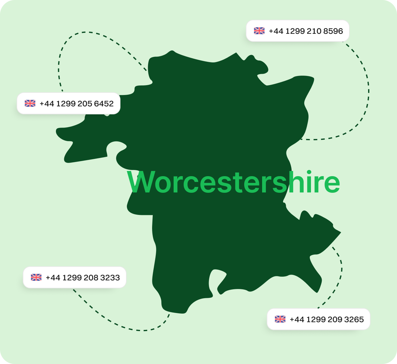 Get Your Worcestershire Virtual Phone Number Today! Establish a local presence in Worcestershire, covering towns like Worcester, Kidderminster, and Bewdley. A virtual phone number improves your accessibility, avoids long-distance charges, and connects you with UK customers, without the need for a physical office. Sign upRequest a Demo Endorsed by top industry leaders Trusted by industry experts for excellence and innovation. What Is a Worcestershire Phone Number? A Worcestershire virtual phone number is a cloud-based number powered by VoIP (Voice over Internet Protocol). It enables voice communication via the internet, rather than using traditional phone lines. This allows you to make and receive calls from any device, in any location, using a local Worcestershire area code. Even if your team operates outside the West Midlands, this number helps you establish a trusted presence in Worcestershire. It’s ideal for businesses reaching customers in surrounding counties like Herefordshire, Gloucestershire, and Warwickshire, while ensuring crystal-clear calls and improved accessibility. How Does a Worcestershire Virtual Phone Number Work? Worcestershire virtual phone numbers function over VoIP, routing calls through your internet connection. When someone dials your local number, their voice is broken into digital packets and sent through your broadband connection, then reconstructed instantly on your end. This system offers consistent call quality with minimal delay, regardless of where your business is located. You can route calls to any mobile, VoIP phone, or desktop device, making it perfect for remote teams, customer service departments, and call centres aiming to reach customers across Worcestershire’s main towns and villages. What Can You Do With a Staffordshire Phone Number? Make & Receive Calls Send & Receive Texts Separate Work & Personal Establish Local Presence Boost Marketing Efforts Make & Receive Calls Stay accessible across Worcester, Malvern, and other business hubs. Get Started Send & Receive Texts Connect with customers in Redditch, Kidderminster, and nearby towns using SMS. Get Started Separate Work & Personal Keep work and personal calls separate, great for remote workers and professionals. Get Started Establish Local Presence Build trust with local numbers—even if your business is based outside the region. Get Started Boost Marketing Efforts Increase engagement and conversions using locally familiar area codes. Get Started More Ways Dialaxy Supports Your UK Business Improved Customer Engagement Local Worcestershire numbers improve answer and SMS response rates. Nationwide UK Coverage Get virtual numbers for nearby counties like Herefordshire, Gloucestershire, and the West Midlands. Effortless Number Portability Easily transfer your existing local number to Dialaxy, with no long-term contracts. Industry-Specific Tools Support for sectors like education, logistics, healthcare, and manufacturing in Worcestershire. Brand Consistency Appear local with region-specific caller IDs across your marketing and support channels. Specific Area Codes for Worcestershire Area Code Region Covered 01299 Bewdley Why Choose Dialaxy for Your Worcestershire Virtual Phone Number? Flexible Plans Ideal for startups, growing businesses, and large teams. Choose what suits your call and messaging needs. Quick Setup Choose your preferred Worcestershire area code and activate your number in just minutes. Scalable for Growth Easily add new numbers as your business expands across other counties or into new markets. 24/7 Customer Assistance Always-on customer support, ideal for businesses operating during non-standard hours. Advanced Call Tools Includes call forwarding, call logs, voicemail-to-email, auto-attendants, and more in one interface. Affordable Pricing Keep costs low while expanding your reach into Worcestershire’s thriving towns and business parks. How to Get a Worcestershire Number with Dialaxy? Step 1 Create an Account Register on Dialaxy using your business or personal email. Step 2 Go to "Add New Number" Access your unified communications dashboard and select this option. Step 3 Choose United Kingdom > Worcestershire Pick the county and your preferred town. Step 4 Pick Your Area Code Choose from available codes like 01905, 01562. Step 5 Make Payment and Verify Finalize payment and complete verification. Step 6 Activate and Use Your number is ready to receive calls, texts, and support your operations. Grow Your Business with a Worcestershire Area Code Strategic Location Worcestershire is centrally located, providing access to Birmingham, Bristol, and the M5 corridor. It connects easily with neighbouring counties, making it ideal for logistics, distribution, and regional expansion. Industry Versatility Worcestershire supports diverse sectors—from food processing to IT and aerospace. A virtual number helps businesses connect with partners, customers, and clients in all these areas. Market Expansion Appear local in Worcester, Redditch, and Bromsgrove—even if your base is in London or overseas. Customers are more likely to trust and respond to familiar area codes. Reliable Connectivity With VoIP and strong broadband coverage in Worcestershire, you’ll stay connected across devices—whether you’re at your desk or working remotely. Business-Friendly Region Worcestershire councils actively support business growth through innovation hubs and economic programs. A local number can help you plug into the region’s growth. Startup Ready From Malvern’s tech startups to family-run retailers in Evesham, Worcestershire is great for entrepreneurs. A virtual number gets you started instantly—no office lease needed. Explore More UK Regions Somerset Cheshire Scottish Borders Kent Surrey Hampshire Devon Essex South Yorkshire View all Frequently Asked Questions What is a Worcestershire virtual phone number?It’s a VoIP-based phone number tied to Worcestershire area codes like 01905 (Worcester)
