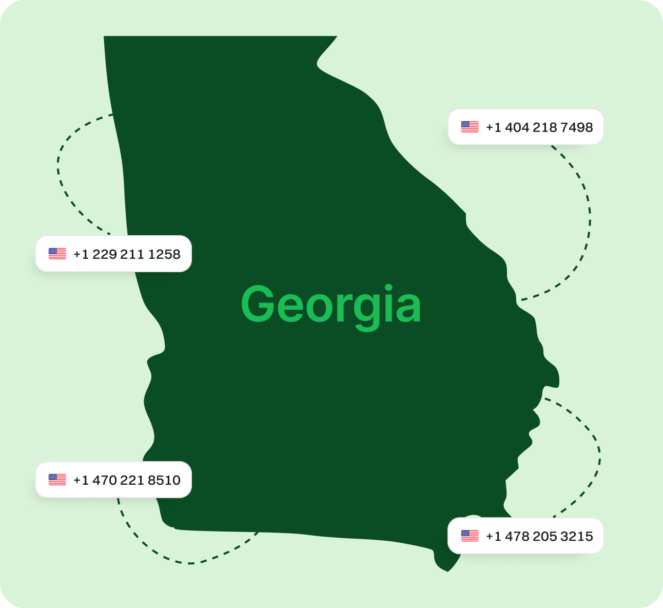 Get a Georgia Virtual Phone Number Today! Establish a local presence and enhance customer trust with a Georgia virtual phone number. Reduce long-distance costs, manage business communications seamlessly, and stay connected from anywhere without requiring a physical office. Sign upRequest a Demo Endorsed by top industry leaders Trusted by industry experts for excellence and innovation. What is a Georgia phone number? A Georgia phone number is a digital number that operates through the internet, often using area codes such as 229, 404, 470, 478, 678, 706, 762, and 912. It functions similarly to a traditional phone number but without the reliance on physical phone lines, offering greater flexibility and convenience. With a Georgia phone number, users can make and receive calls from anywhere, using the internet to connect. Unlike traditional numbers, Georgia phone numbers aren’t tied to a specific location or device, giving businesses and individuals the ability to establish a local presence in Georgia no matter where they are located globally. Whether for personal or business use, these numbers are easily accessible through various virtual phone service providers, eliminating the need for costly hardware or infrastructure. An example of a Georgia phone number would be +1 404 123-4567. How does a Georgia virtual phone number work? A Georgia VoIP number operates using cloud-based technology, routing calls over the internet rather than traditional phone networks. When someone calls your Georgia number, the call is transformed into digital data packets, sent through the internet, and delivered to the recipient. The data is then converted back into voice signals for real-time communication. This advanced technology enables businesses to streamline call management and maintain professional customer interactions. Georgia VoIP numbers can be accessed via mobile apps, VoIP phones, or desktop applications, eliminating the need for traditional phone systems. How to make the most of Georgia phone numbers? Make & Receive Calls Send & Receive Texts Keep Work & Personal Separate Establish Local Presence Boost Marketing Efforts Make & Receive Calls Use your Georgia phone number for business calls while keeping your personal number private. Dialaxy lets you show your Georgia number on caller ID, ensuring professionalism. Get Started Send & Receive Texts Leverage text messaging to connect with customers. Use your Georgia number to send updates, promotions, and reminders, offering a convenient way to stay in touch. Get Started Keep Work & Personal Separate Dialaxy helps you maintain privacy by separating business and personal communications. Manage calls and messages for work without interruptions to your personal life. Get Started Establish Local Presence Build trust with a local Georgia number, even if your business operates remotely. A recognizable area code helps you connect with customers more effectively. Get Started Boost Marketing Efforts Improve your campaigns by using your Georgia number for outreach. Localized numbers increase customer engagement and response rates for promotions and offers. Get Started Specific area codes for Georgia Area Code Area Served 229 Southwestern Georgia, Including Albany 404 Atlanta and surrounding areas 470 Atlanta and metro regions 478 Central Georgia, including Macon 678 Greater Atlanta area 706 Northern Georgia, including Augusta 762 Overlay for 706, Covering northern Georgia 770 Atlanta Suburbs 912 Southeastern Georgia, including Savannah 943 Overlay for 404,470,678,and 770 Why choose Dialaxy for a Georgia virtual phone number? Customizable Plans for Flexibility Dialaxy offers a variety of pricing plans tailored to your needs, allowing you to choose features and services that best suit your personal or business requirements without overpaying. Quick Setup with Zero Hassle Setting up a virtual phone number with Dialaxy is simple and requires no additional hardware. Enjoy a seamless setup process and start making calls within minutes. Scalable Solutions for Growth As your business expands, Dialaxy grows with you. You can easily scale your services by adding multiple Georgia numbers, ensuring smooth communication with your increasing customer base. Round-the-Clock Support Dialaxy provides 24/7 customer support to resolve any issues or answer questions promptly, keeping your business communication efficient and stress-free. Enhanced Call Management Features Leverage advanced features like call forwarding, voicemail-to-email, and analytics to manage calls more effectively and deliver exceptional customer service. Cost-Effective Pricing With Dialaxy, you get premium services at affordable prices. Whether you're a small business or a large enterprise, you can enjoy professional telephony solutions without exceeding your budget. How to buy a Georgia number for your business? Step 1 Create an Account Sign up on Dialaxy by visiting their website and completing the simple registration process. Step 2 Navigate to the "Add New Number" Section Go to your account dashboard, find the "Add New Number" option, and select it. Step 3 Select USA and Search for Your Preferred Area Codes From the country list, choose "USA," then search area code according to your phone number need. Step 4 Pick Your Georgia Number Browse through the list of available Georgia numbers, select the one you want, and add it to your cart. Step 5 Make Payment and Verify Details Complete the payment process and submit any required documentation to verify your account. Step 6 Activate and Start Using Your Number Once activated, your Georgia virtual phone number is ready to use to make and receive calls. Explore More States Alabama Arkansas Delaware Florida Kentucky Louisiana Maryland Mississippi North Carolina Oklahoma South Carolina Tennessee Texas Virginia West Virginia Washington DC View all Frequently Asked Questions What is a Georgia virtual phone number?A Georgia virtual phone number is a cloud-based VoIP p